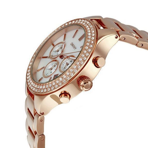 ساعت مچی زنانه کلاسیک فشن تمام استیل، نگین دار، باترکیب رنگ: سفید - مسی