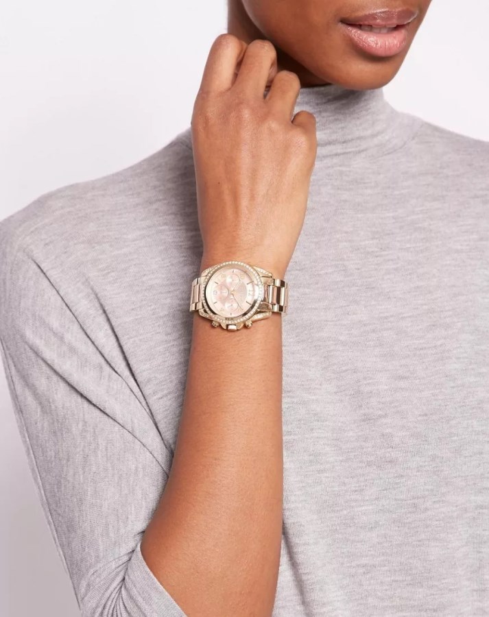 ساعت مچی زنانه کلاسیک فشن تمام استیل، نگین دار، باترکیب رنگ: مسی - طلایی