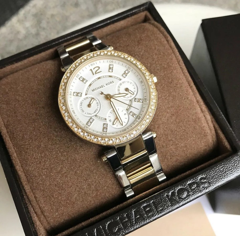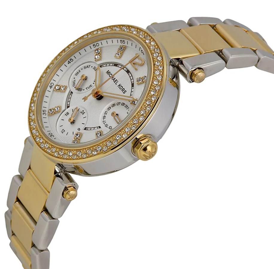 ساعت مچی زنانه کلاسیک تمام استیل، نگین دار، باترکیب رنگ: طلایی - سفید - استیل
