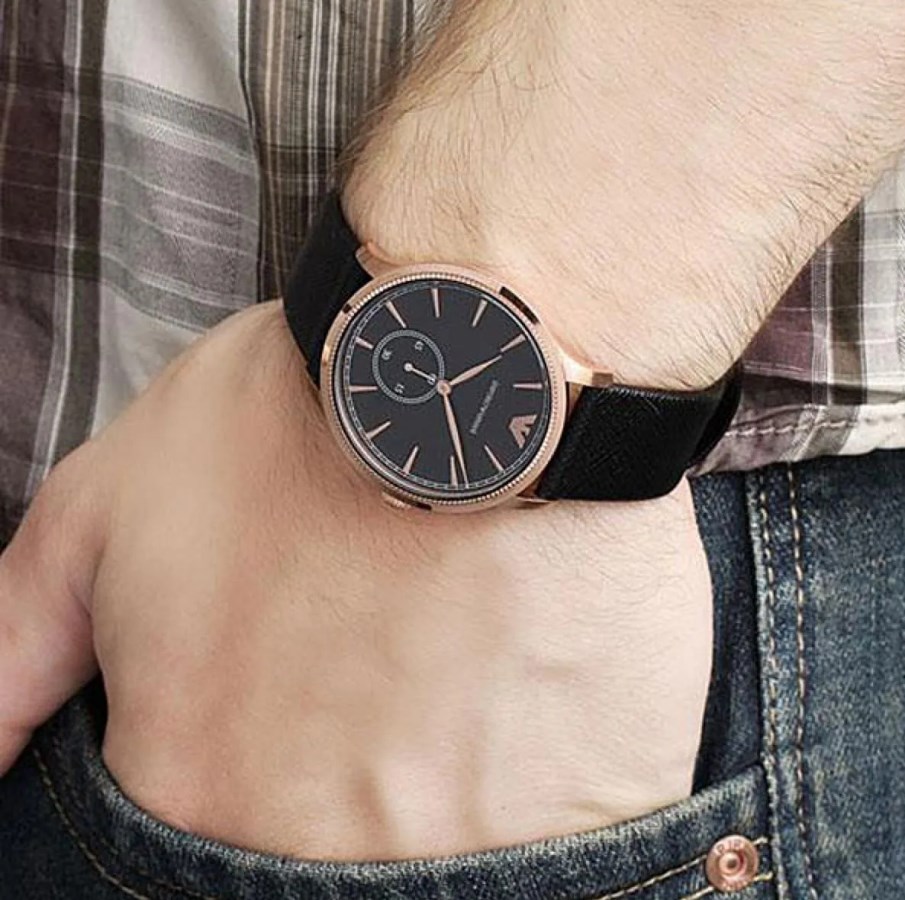 ساعت مچی کلاسیک بند چرمی باترکیب رنگ:مشکی -مسی .مناسب برای آقایان