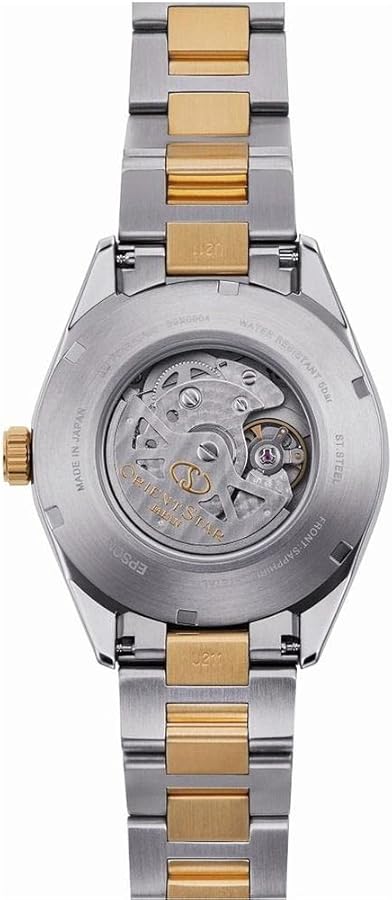 جنس بکاررفته استنلس استیل - جنس شیشه کریستال معدنی با پوشش یاقوت کبود - سنگ قیمتی داخل موتور ساعت
