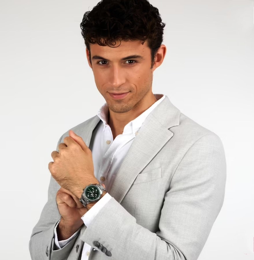 ساعت مچی مردانه کلاسیک بند فلزی ، با ترکیب رنگ نقرهای و سبز - مناسب مجالس رسمی و فعالیت های روزمره