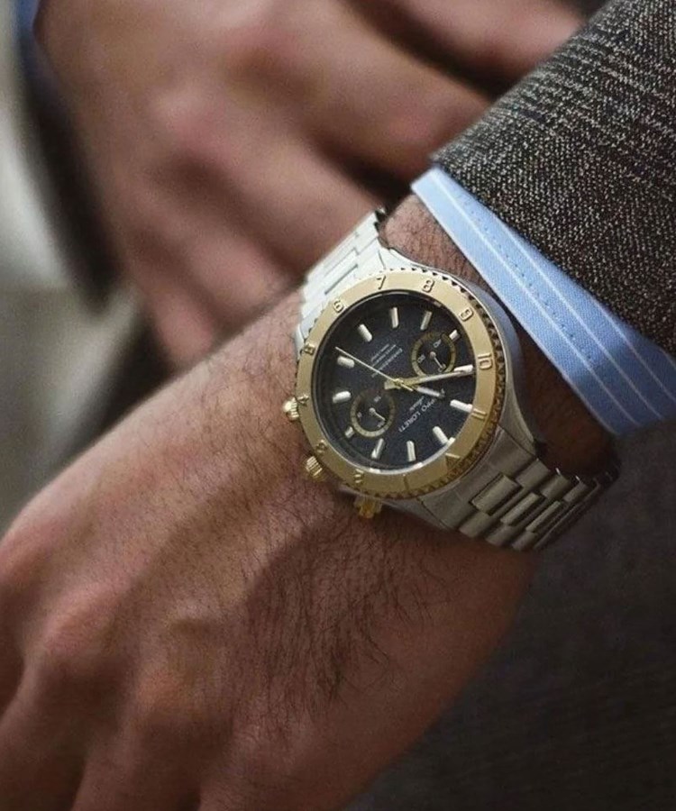 ساعت مچی مردانه کلاسیک اسپرت ، با ترکیب رنگ نقرهای،طلایی و مشکی - مناسب مجالس رسمی و قابل استفاده در ورزش های آبی و شنا