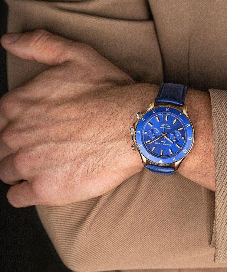 ساعت مچی مردانه کلاسیک اسپرت بند چرمی ، با ترکیب رنگ سرمه ای و مسی - مناسب فعالیت های روزمره و قابل استفاده در ورزش های آبی و شنا