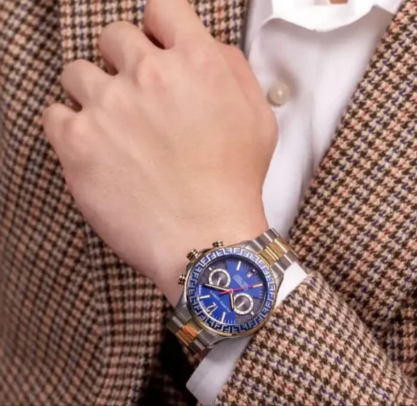 ساعت مچی مردانه کلاسیک اسپرت بند فلزی ، با ترکیب رنگ نقرهای،طلایی،سرمه ای و خاکستری - مناسب مجالس رسمی و فعالیت های آبی و شنا