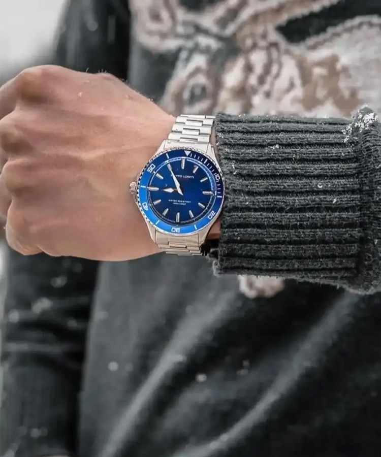 ساعت مچی مردانه کلاسیک بند فلزی ، با ترکیب رنگ نقرهای و سرمه ای - مناسب مجالس رسمی و فعالیت های روزمره
