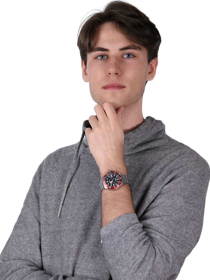ساعت مچی مردانه کلاسیک بند فلزی ، با ترکیب رنگ نقرهای، قرمز و مشکی - مناسب مجالس رسمی و فعالیت های روزمره