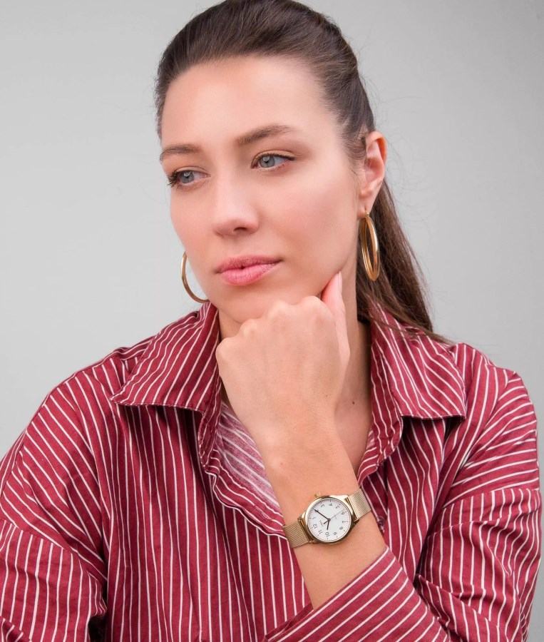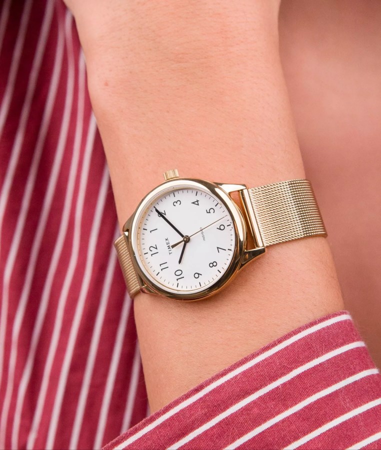 ساعت مچی زنانه کلاسیک بند فلزی ، با ترکیب رنگ طلایی و سفید - مناسب مجالس رسمی و فعالیت های روزمره