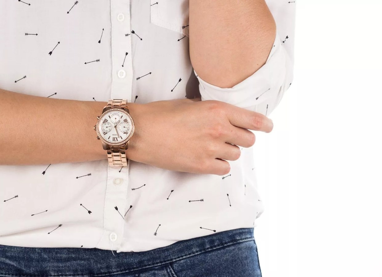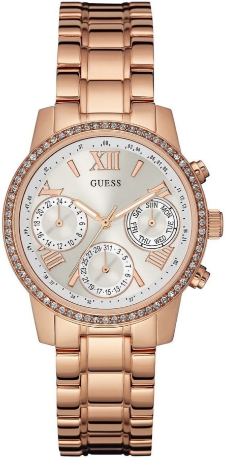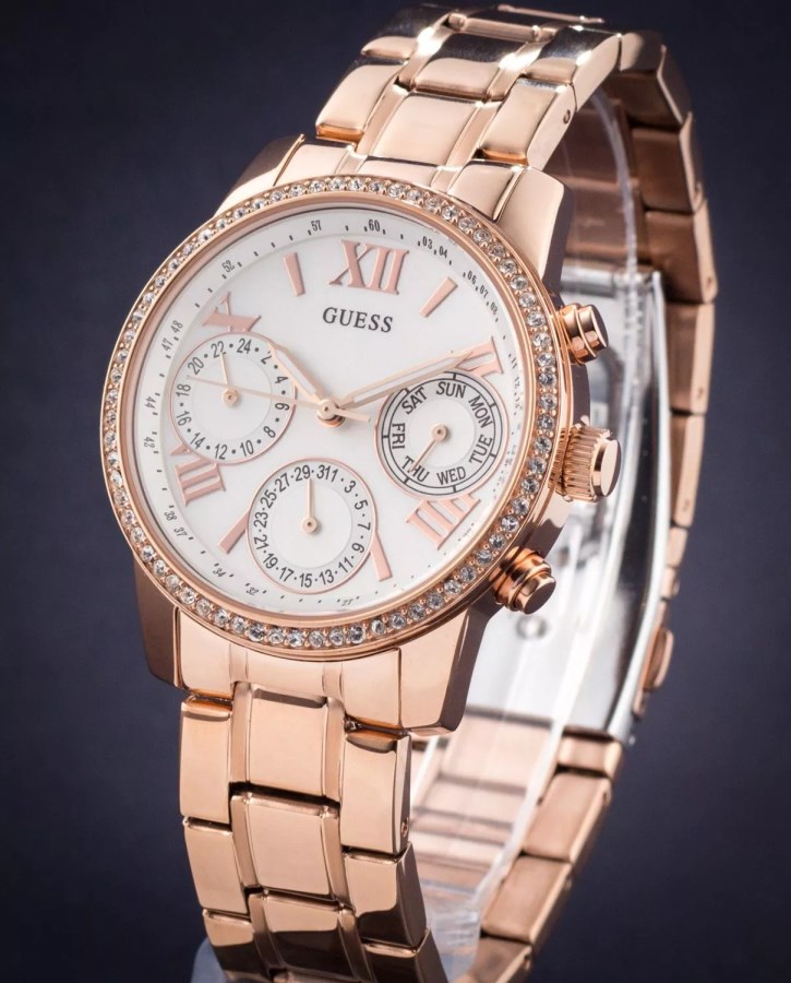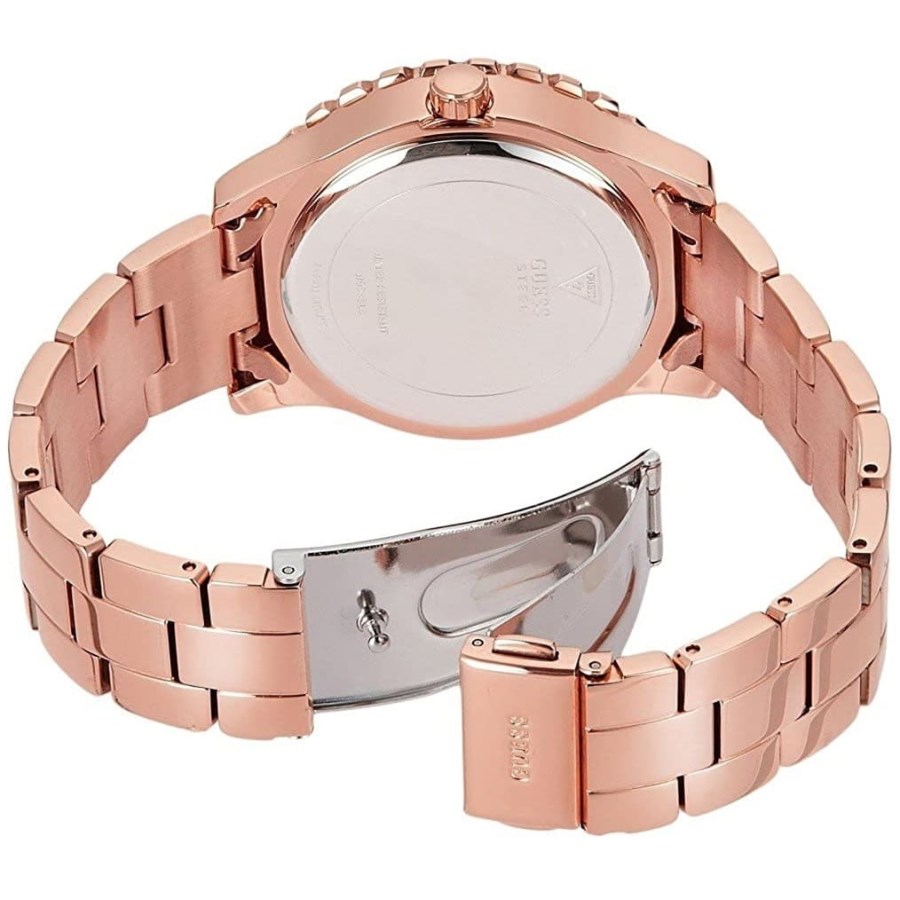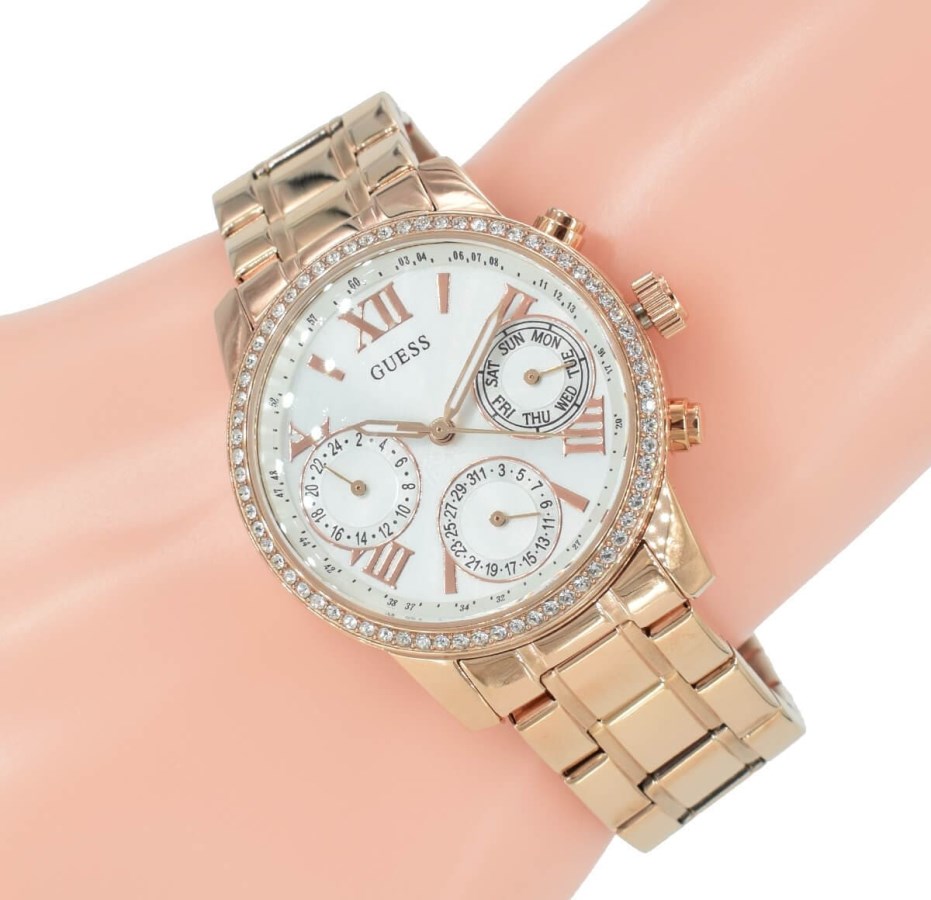 ساعت مچی زنانه نگین دار کلاسیک بند فلزی ، با ترکیب رنگ رزگلد و نقره ای - مناسب مجالس رسمی و فعالیت های روزمره