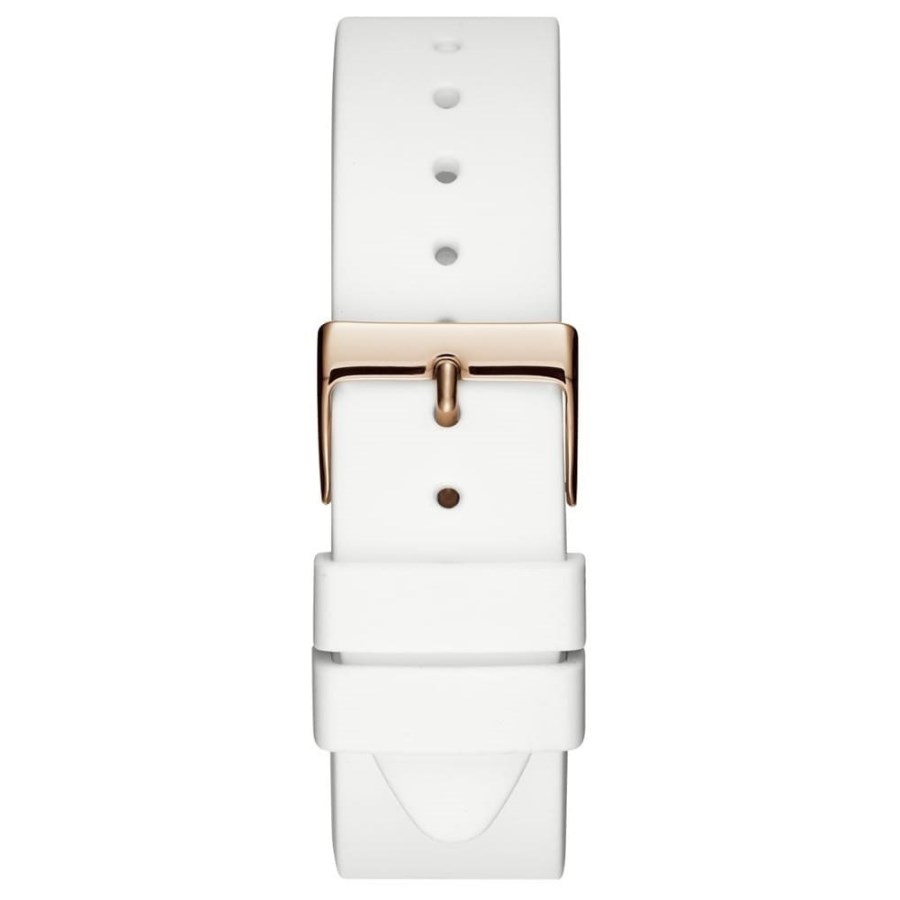 ساعت مچی زنانه اسپرت بند پلاستیکی ، با ترکیب رنگ سفید و رزگلد - مناسب فعالیت های ورزشی