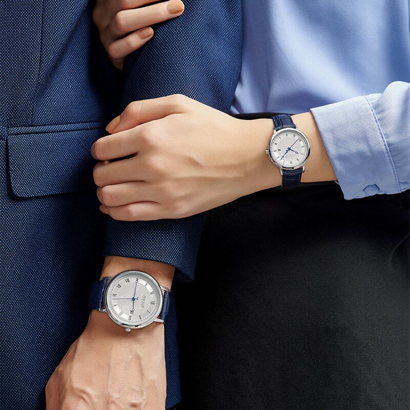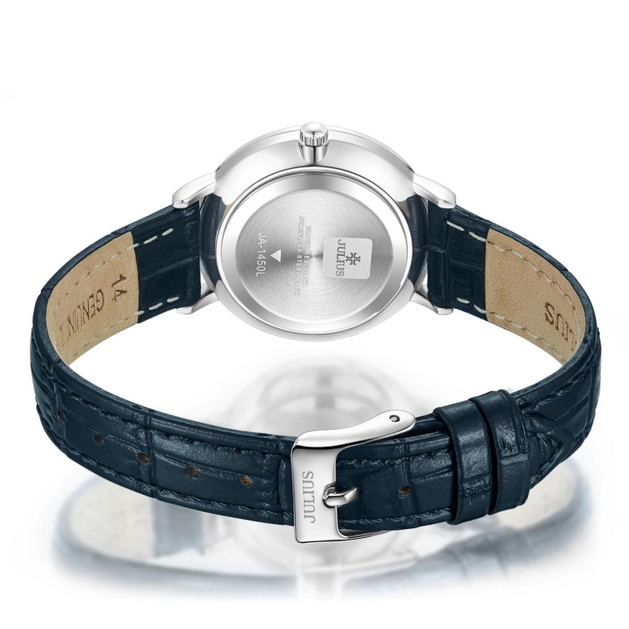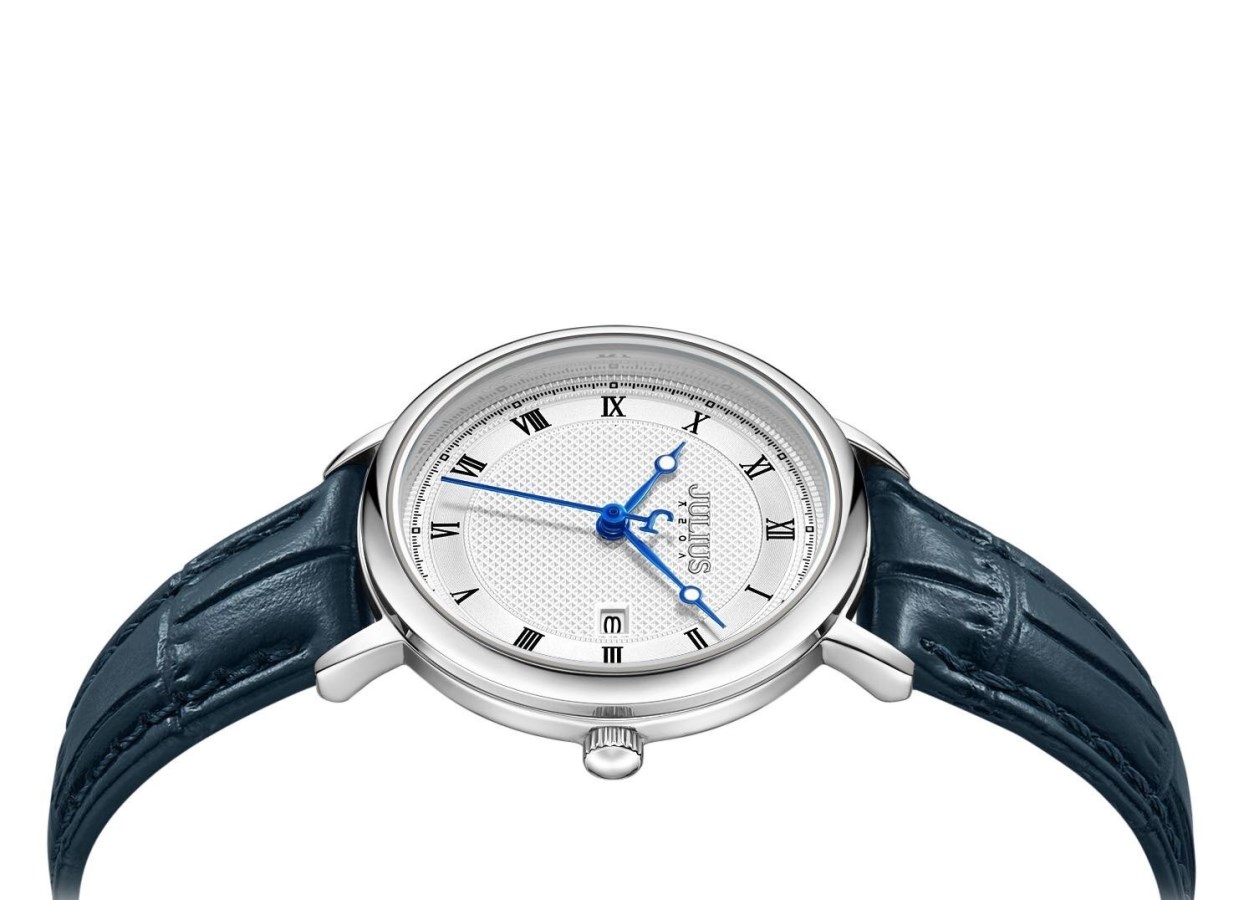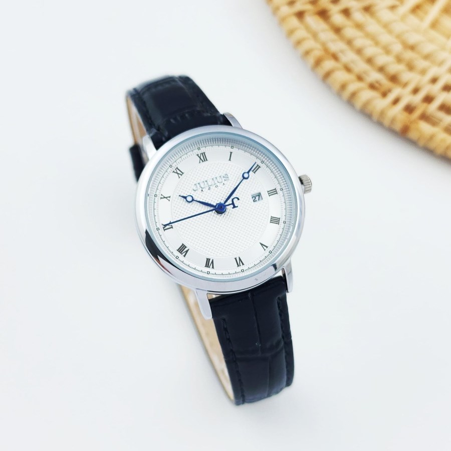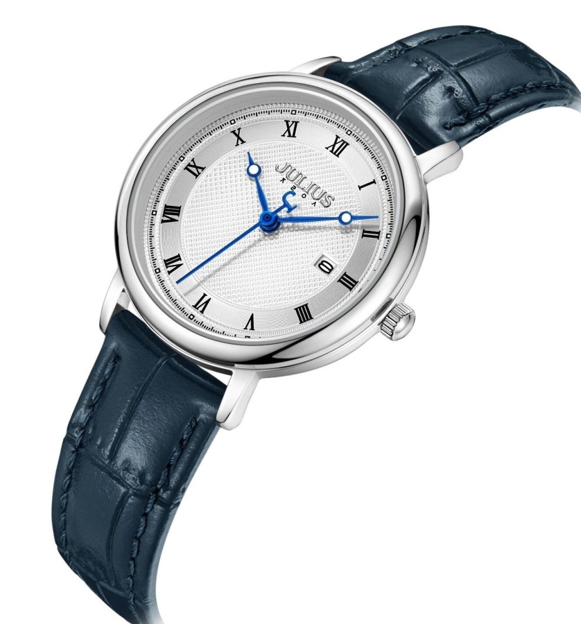 ساعت مچی زنانه کلاسیک بند چرمی ، با ترکیب رنگ سرمه ای و نقره ای - مناسب مجالس رسمی و فعالیت های روزمره