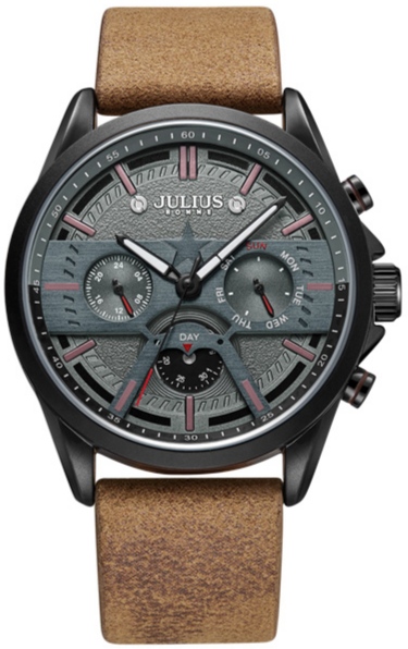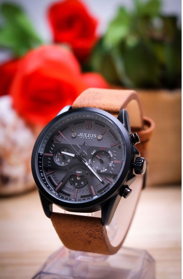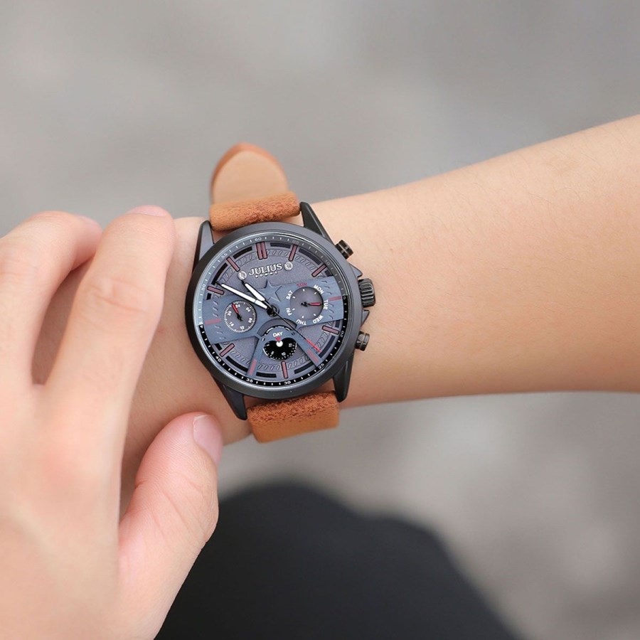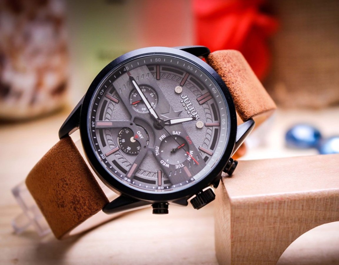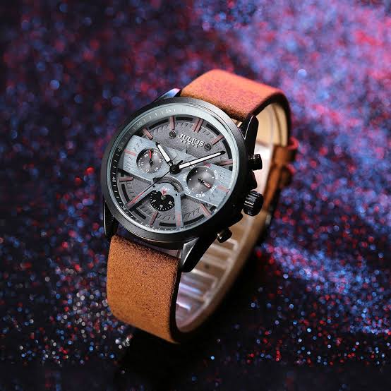 ساعت مچی مردانه کلاسیک بند چرمی ، با ترکیب رنگ قهوهای و خاکستری - مناسب مجالس رسمی و فعالیت های روزمره