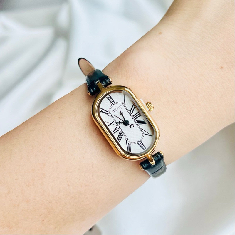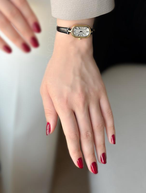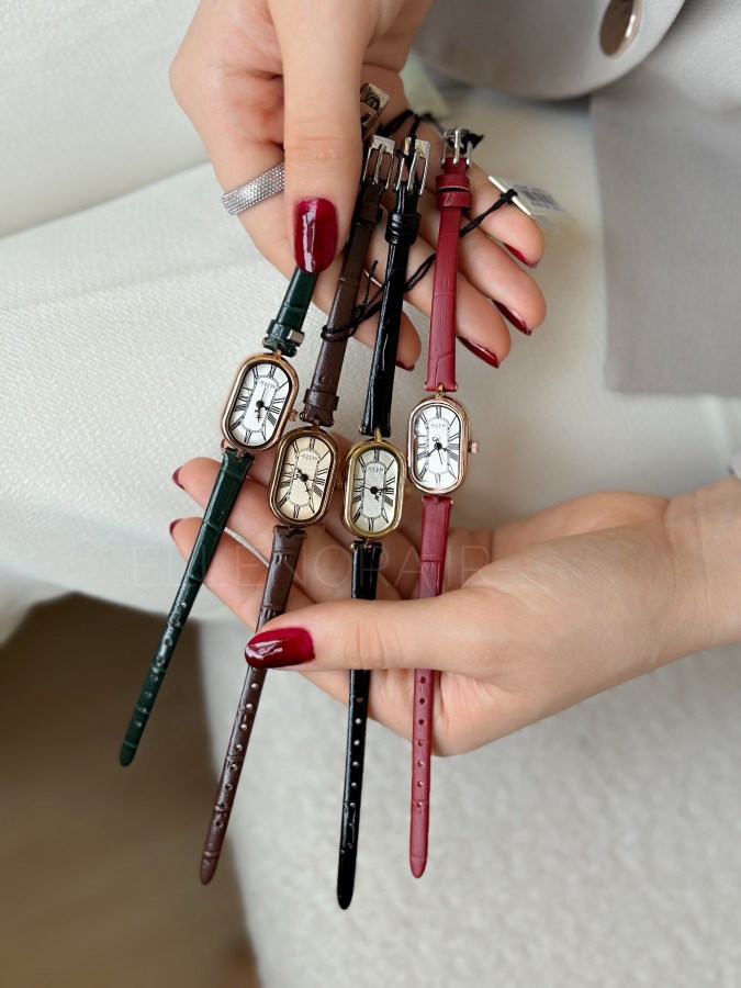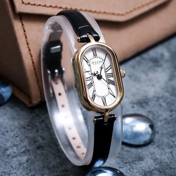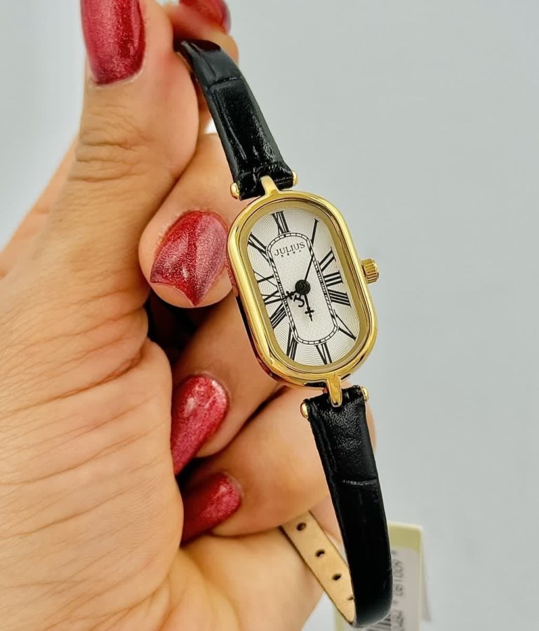 ساعت مچی زنانه کلاسیک بند چرمی ، با ترکیب رنگ مشکی،طلایی و سفید - مناسب مجالس رسمی و فعالیت های روزمره