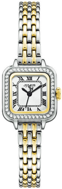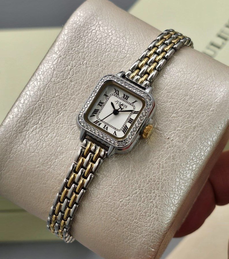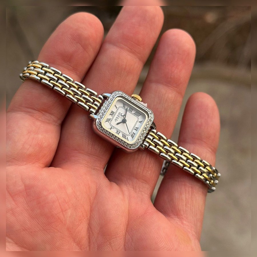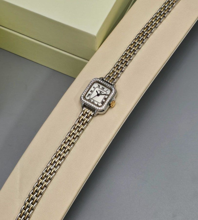 ساعت مچی زنانه نگین دار کلاسیک بند فلزی ، با ترکیب رنگ طلایی،نقره ای - مناسب مجالس رسمی و فعالیت های روزمره