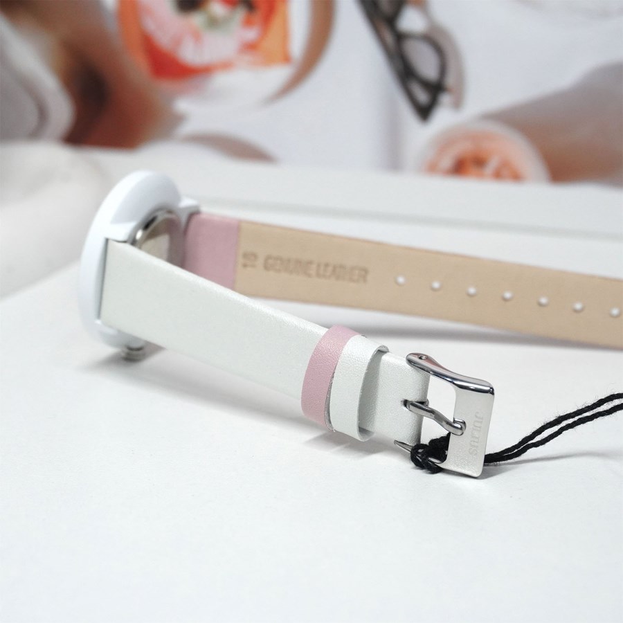 ساعت مچی زنانه کلاسیک بند چرمی ، با ترکیب رنگ سفید و صورتی - مناسب مجالس رسمی و فعالیت های روزمره