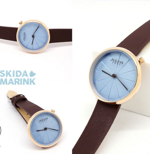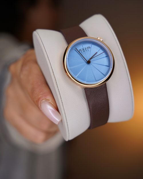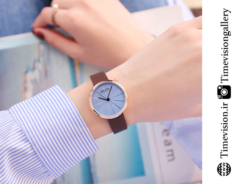 ساعت مچی زنانه کلاسیک بند چرمی ، با ترکیب رنگ قهوهای و آبی - مناسب مجالس رسمی و فعالیت های روزمره