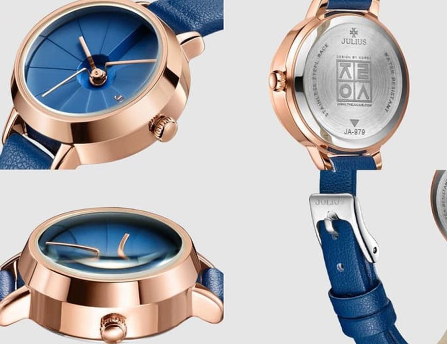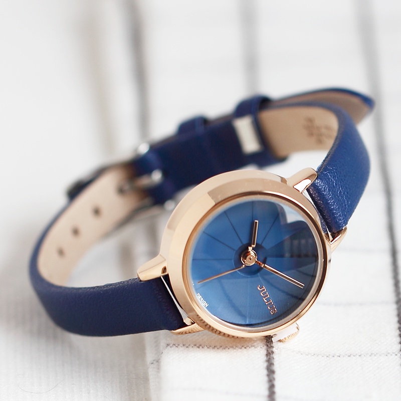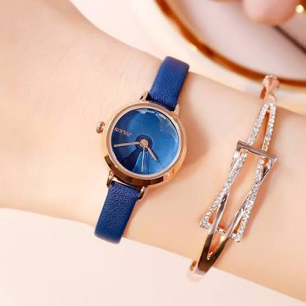 ساعت مچی زنانه کلاسیک بند چرمی ، با ترکیب رنگ سرمه ای و رزگلد - مناسب مجالس رسمی و فعالیت های روزمره