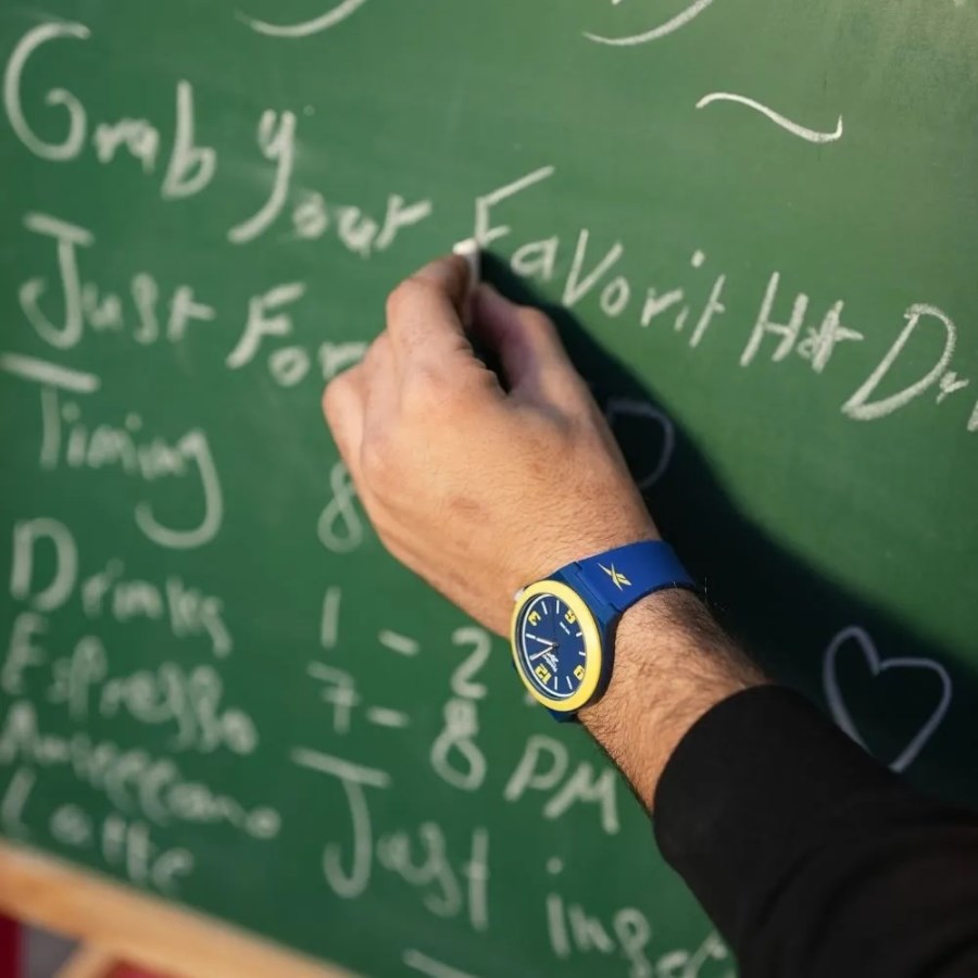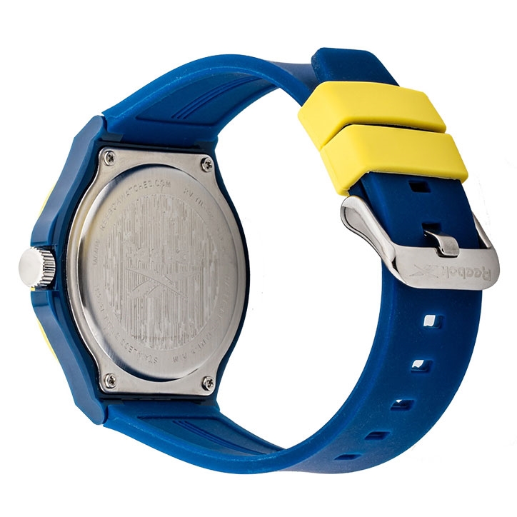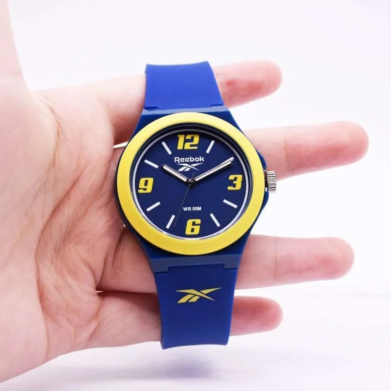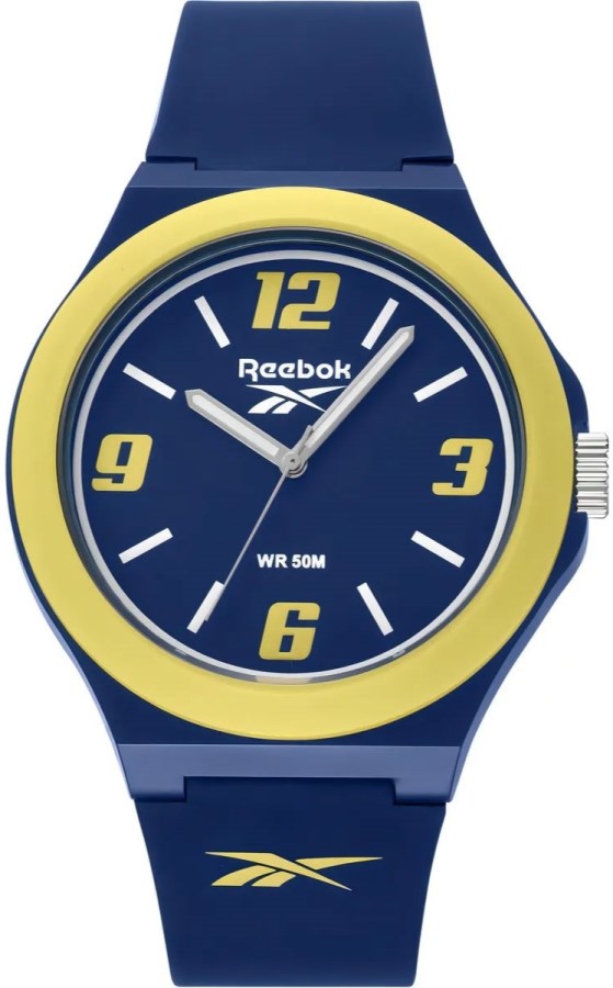 ساعت مچی مردانه اسپرت بند پلاستیکی ، با ترکیب رنگ سرمه ای و زرد - مناسب فعالیت های ورزشی