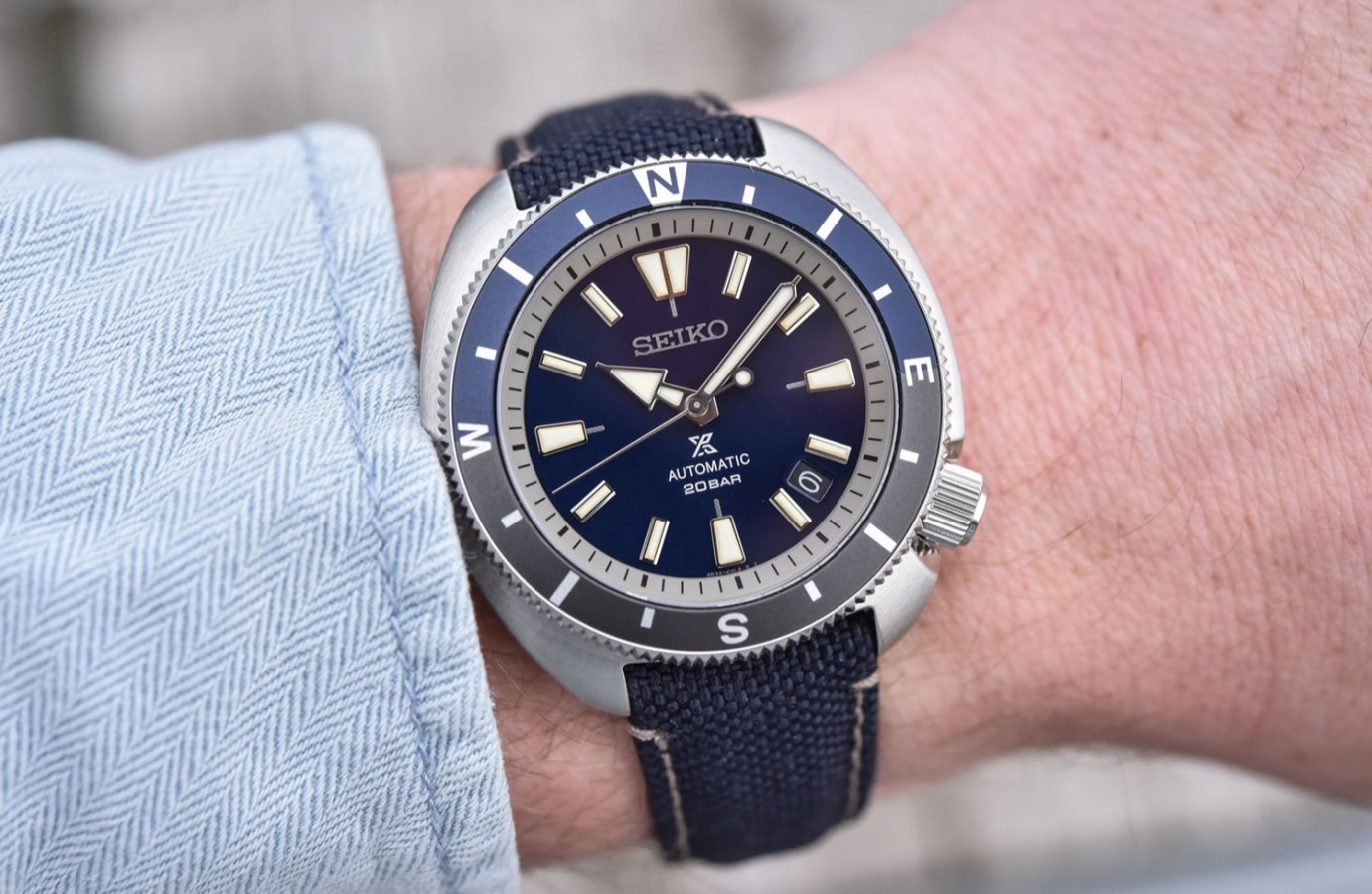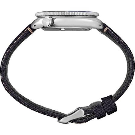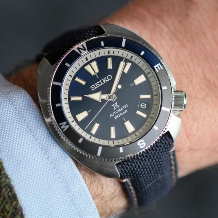ساعت مچی مردانه کلاسیک اسپرت بند چرم با روکش برزنت ، با ترکیب رنگ سرمه ای و نقره ای - مناسب روزمره و ورزش های آبی و شنا