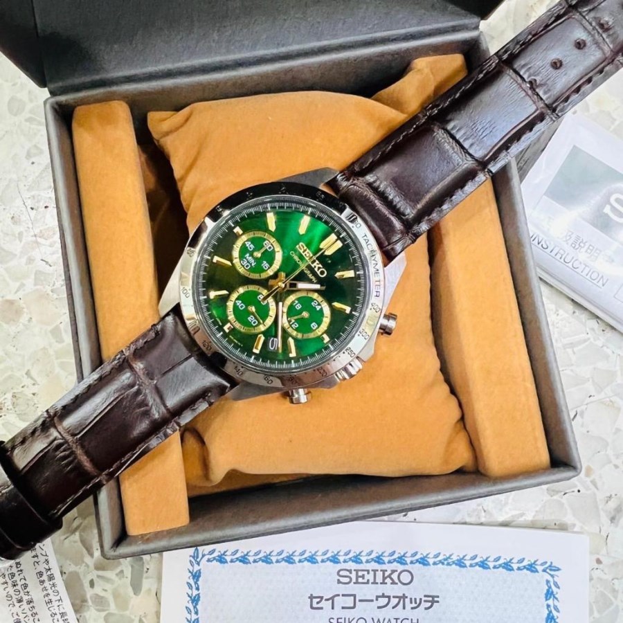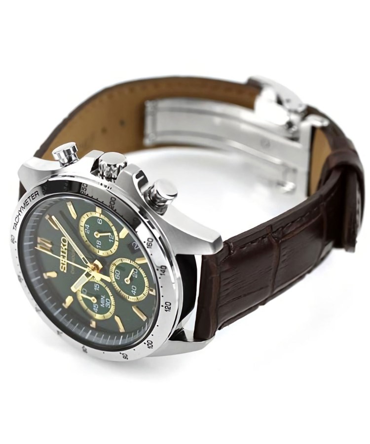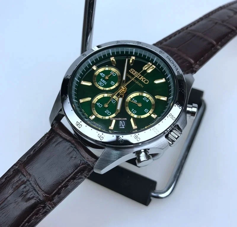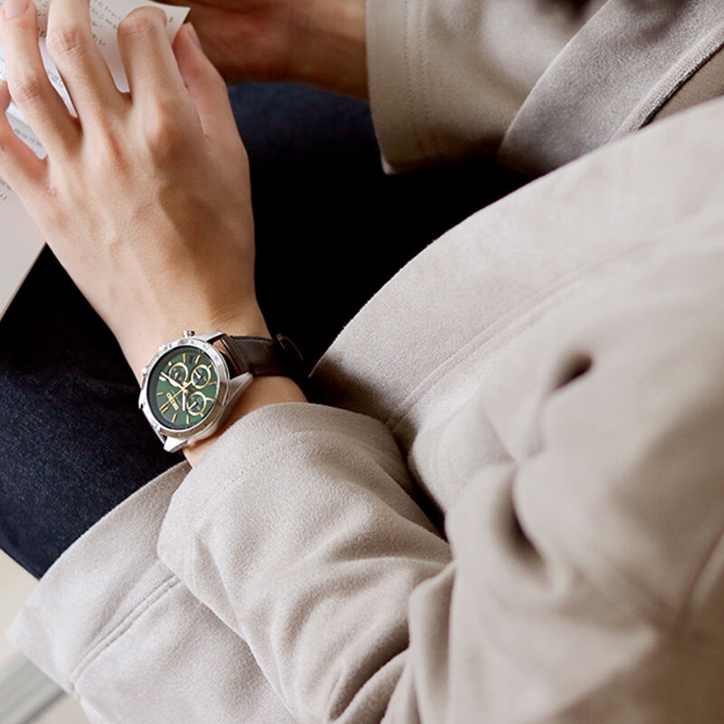 ساعت مچی مردانه کلاسیک بند چرمی ، با ترکیب رنگ قهوهای،سبز و نقره ای - مناسب مجالس رسمی و فعالیت های روزمره