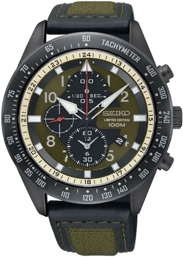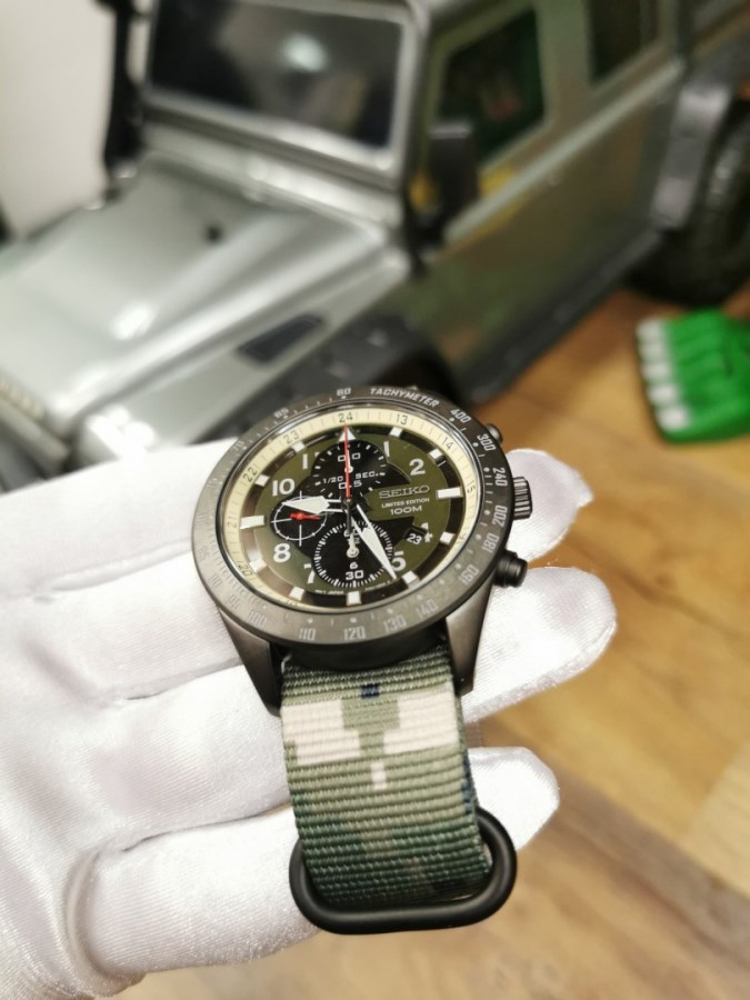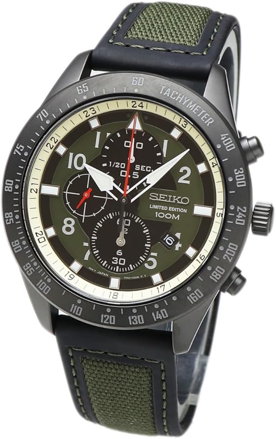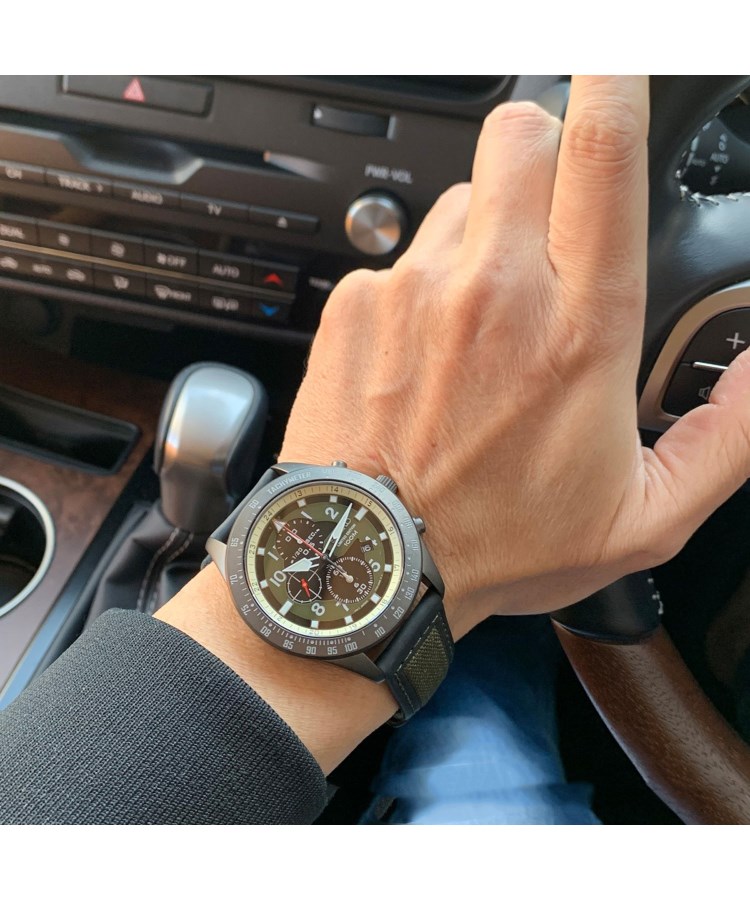 ساعت مچی مردانه اسپرت بند چرمی با روکش برزنت ، با ترکیب رنگ سبز و مشکی - مناسب فعالیت های ورزشی