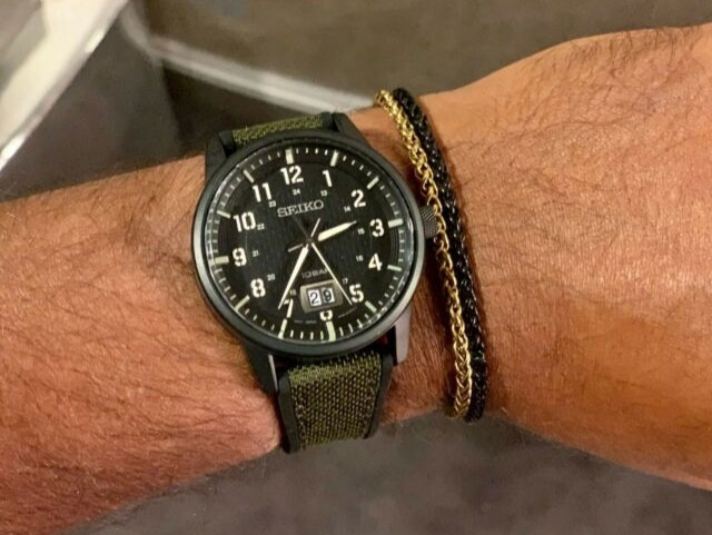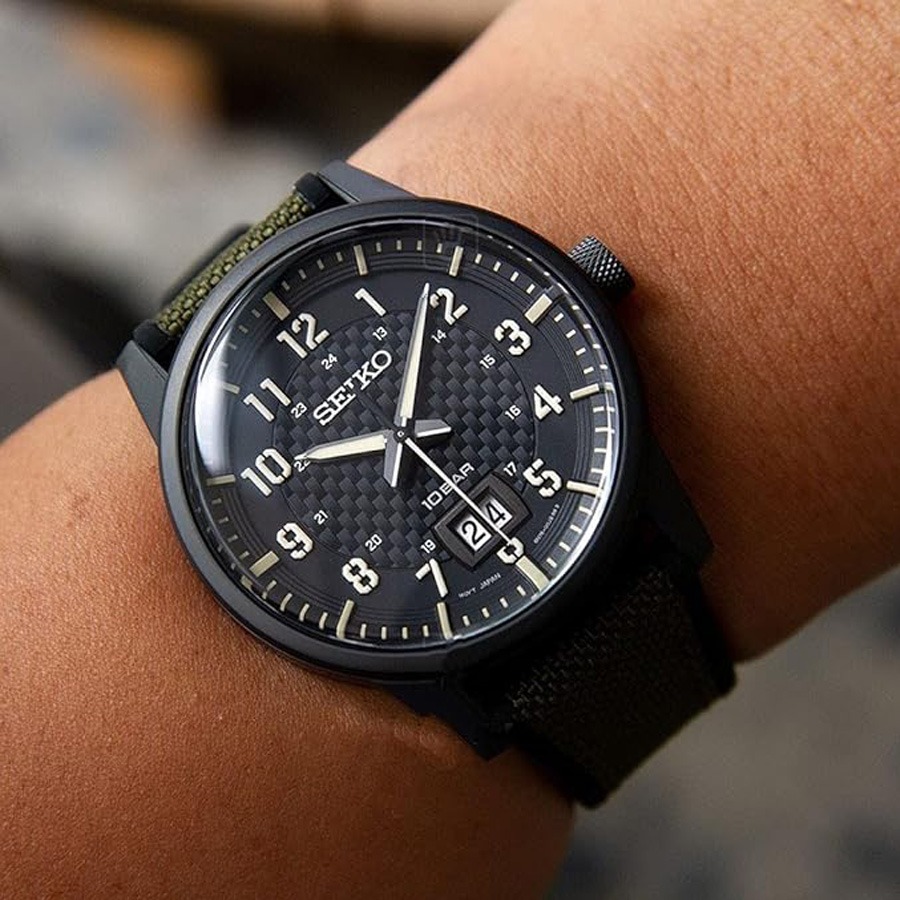 ساعت مچی مردانه اسپرت بند پلاستیکی با روکش برزنت ، با ترکیب رنگ سبز و مشکی - مناسب فعالیت های ورزشی