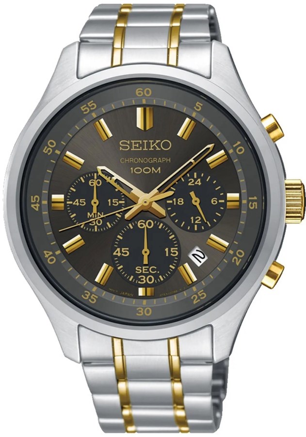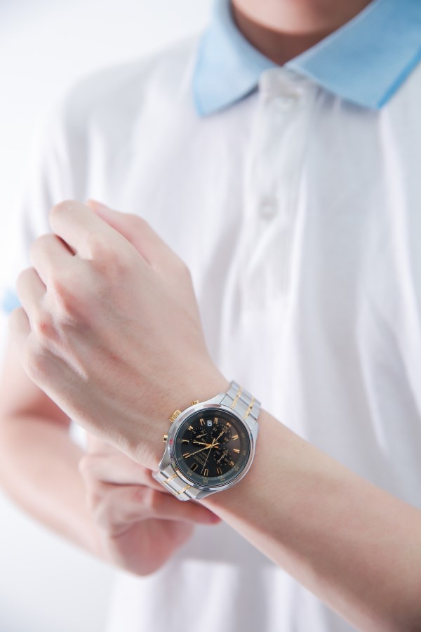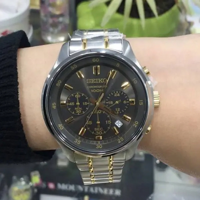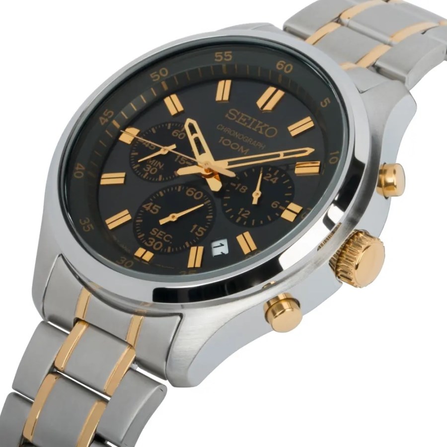 ساعت مچی مردانه کلاسیک اسپرت بند فلزی ، با ترکیب رنگ نقرهای،طلایی و مشکی - مناسب فعالیت های ورزشی و روزمره