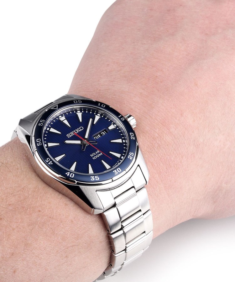 ساعت مچی مردانه کلاسیک بند فلزی ، با ترکیب رنگ نقرهای و سرمه ای - مناسب مجالس رسمی و فعالیت های روزمره