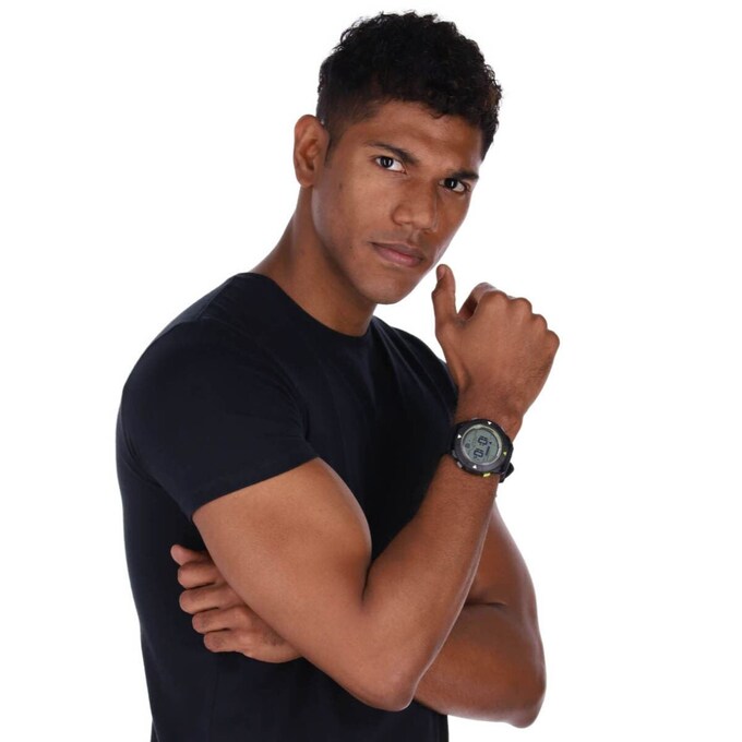 ساعت مچی مردانه اسپرت بند پلاستیکی ، با ترکیب رنگ مشکی و سبز - مناسب فعالیت های ورزشی