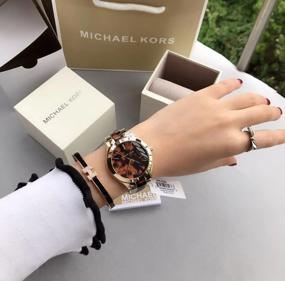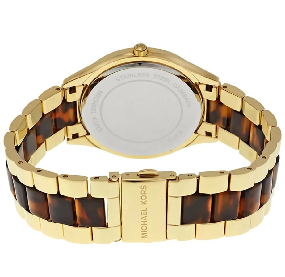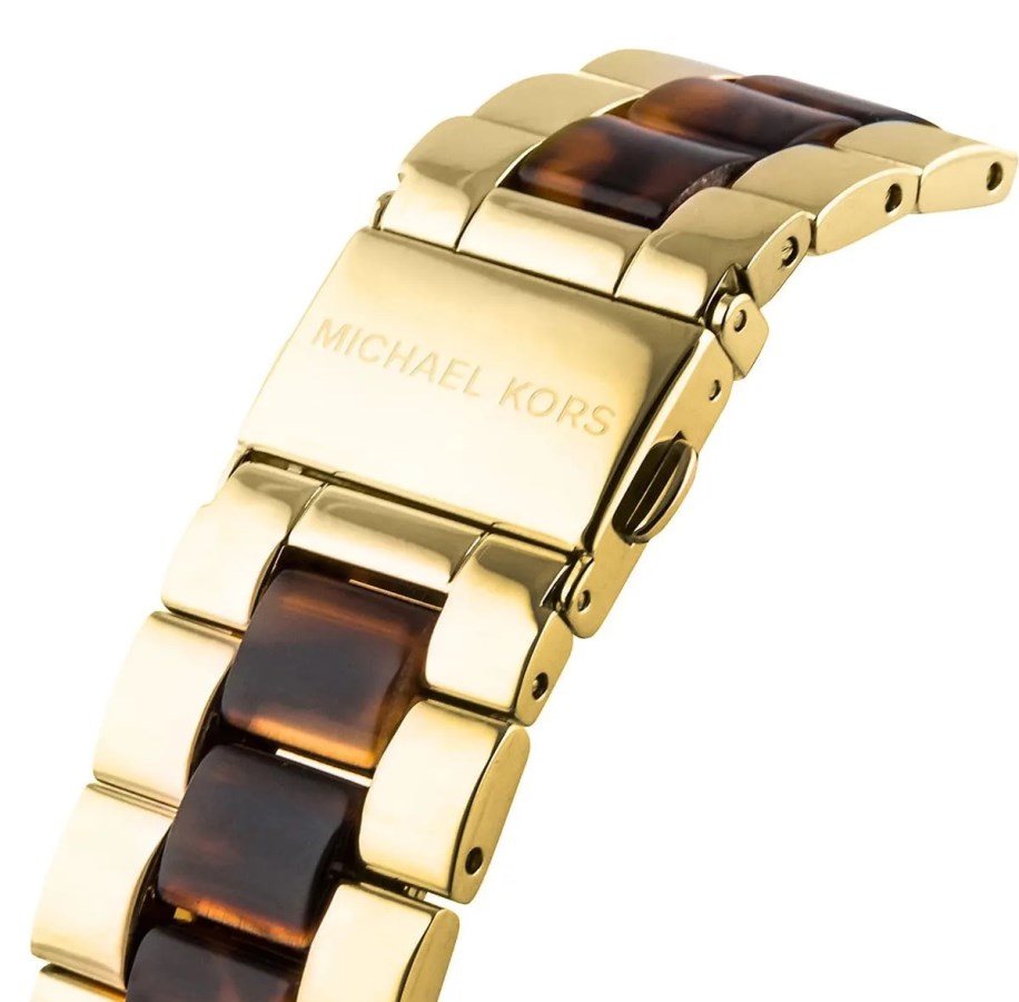 ساعت مچی زنانه کلاسیک بند استیل و پلاستیک -باترکیب رنگ:طلایی -قهوه ای