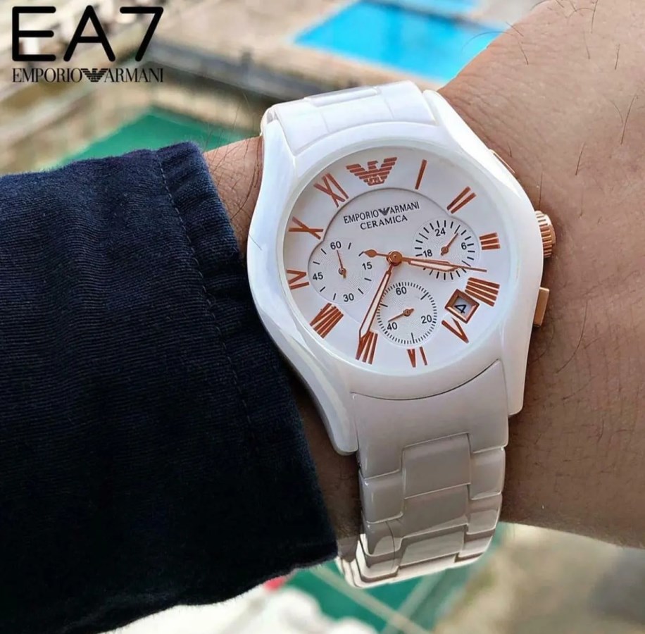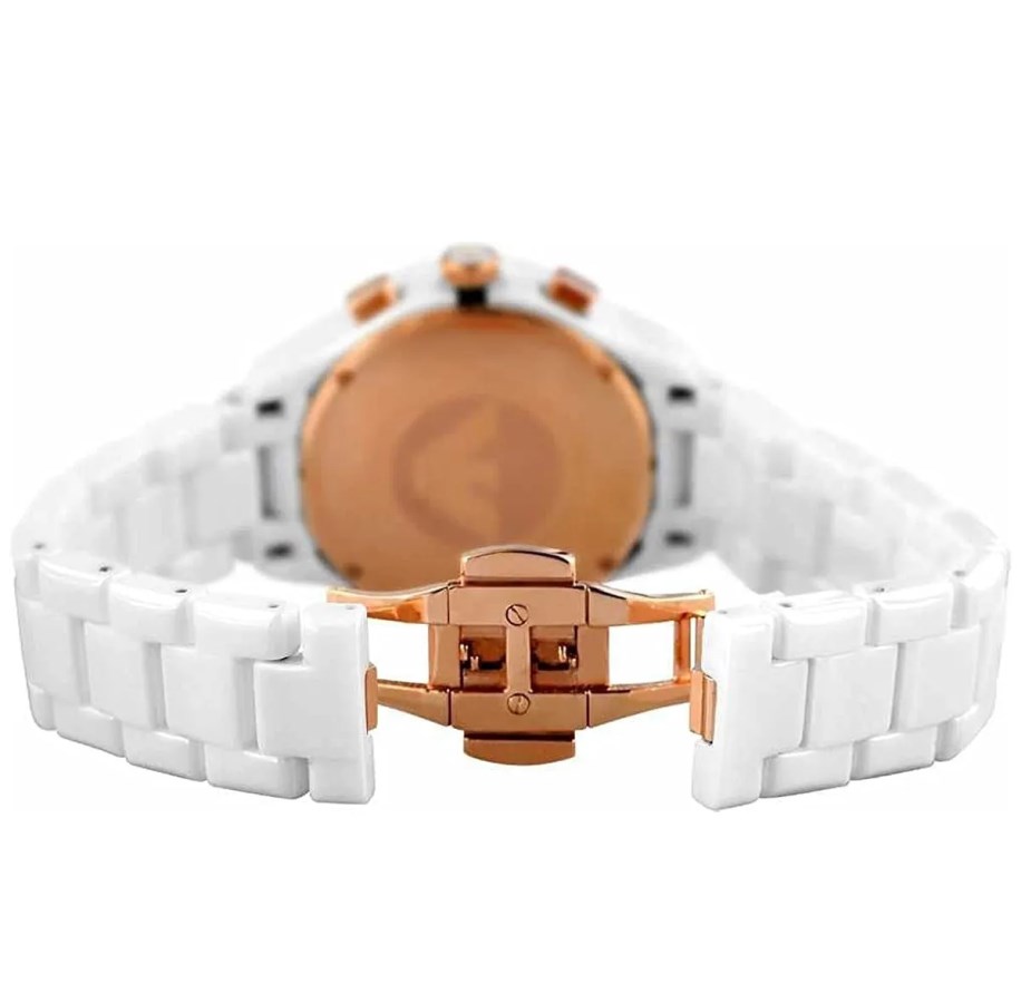 ساعت مچی مردانه و زنانه کلاسیک تمام سرامیک،با ترکیب رنگ:سفید - مسی